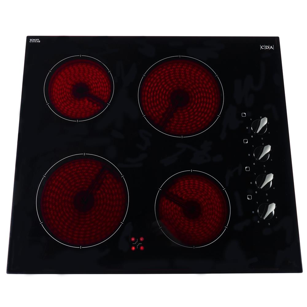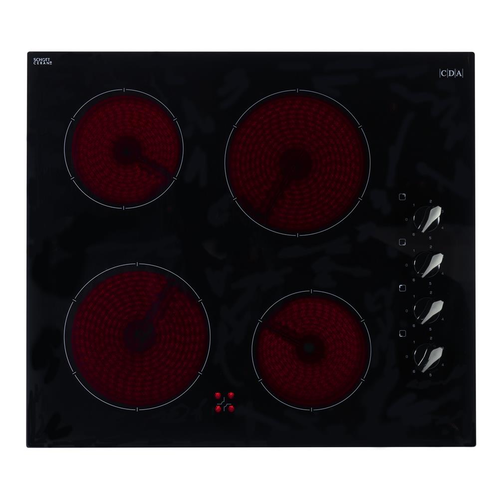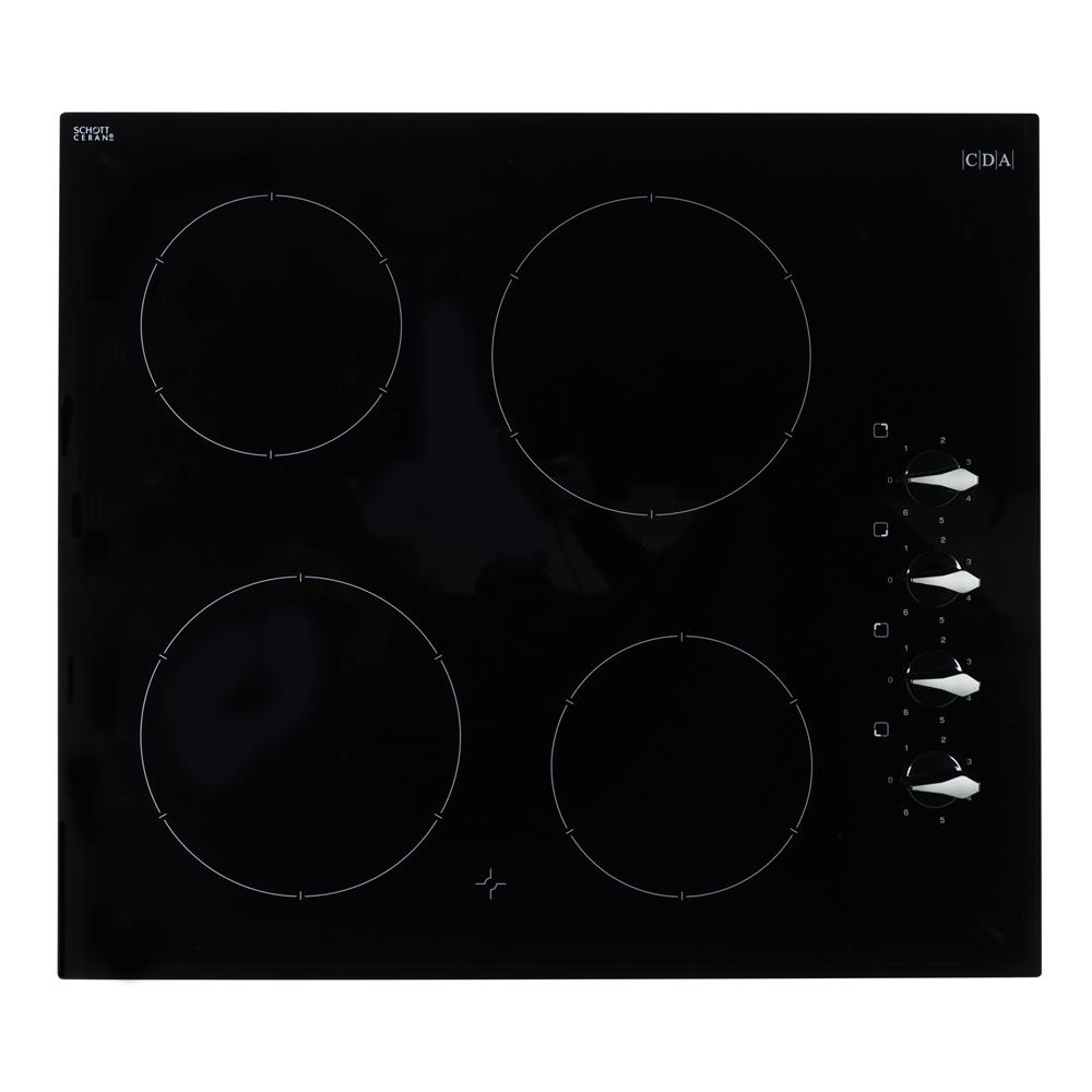 The HC6212FR is a four zone, ceramic hob with easy to use, side rotary controls. It has a sleek, frameless black glass design with an easy clean surface for quick maintenance. The HC6212FR has side rotary control out of reach from children for safety.