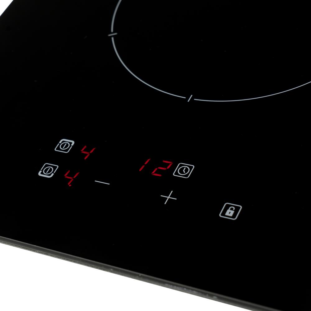 The HC3621FR is a two zone ceramic domino hob. It comes in a stylish, frameless black glass design and features an LED display with touch controls for each cooking zone. A built-in timer allows to you set cooking times and our auto safety switch off feature is programmed in, to prevent the hob being left on. Nine power levels on each cooking zone allow quick adjustment of pans to boil, simmer, melt or even keep food warm.