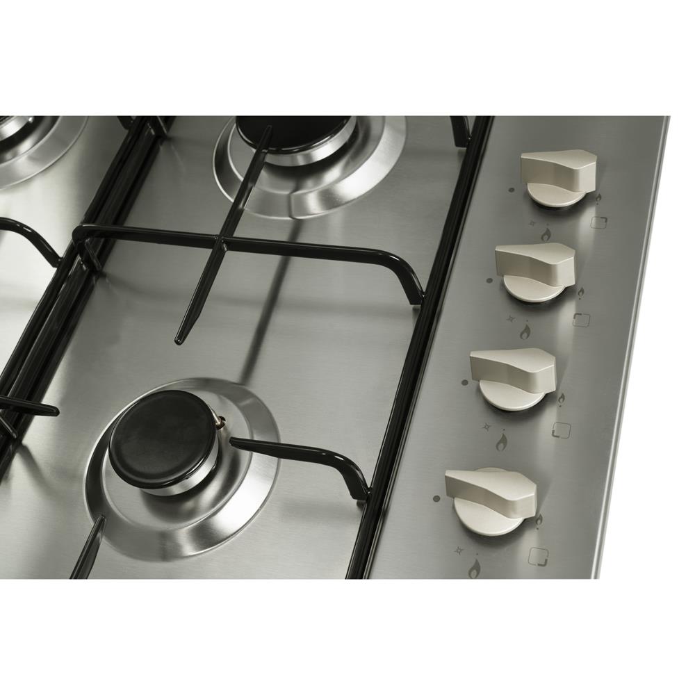 The HG6151SS is a four burner gas hob in stainless steel. The hob provides functional and efficient cooking for the user with a sleek stainless steel finish, dishwashable enamel pan supports, side control for safety and flame failure as standard.