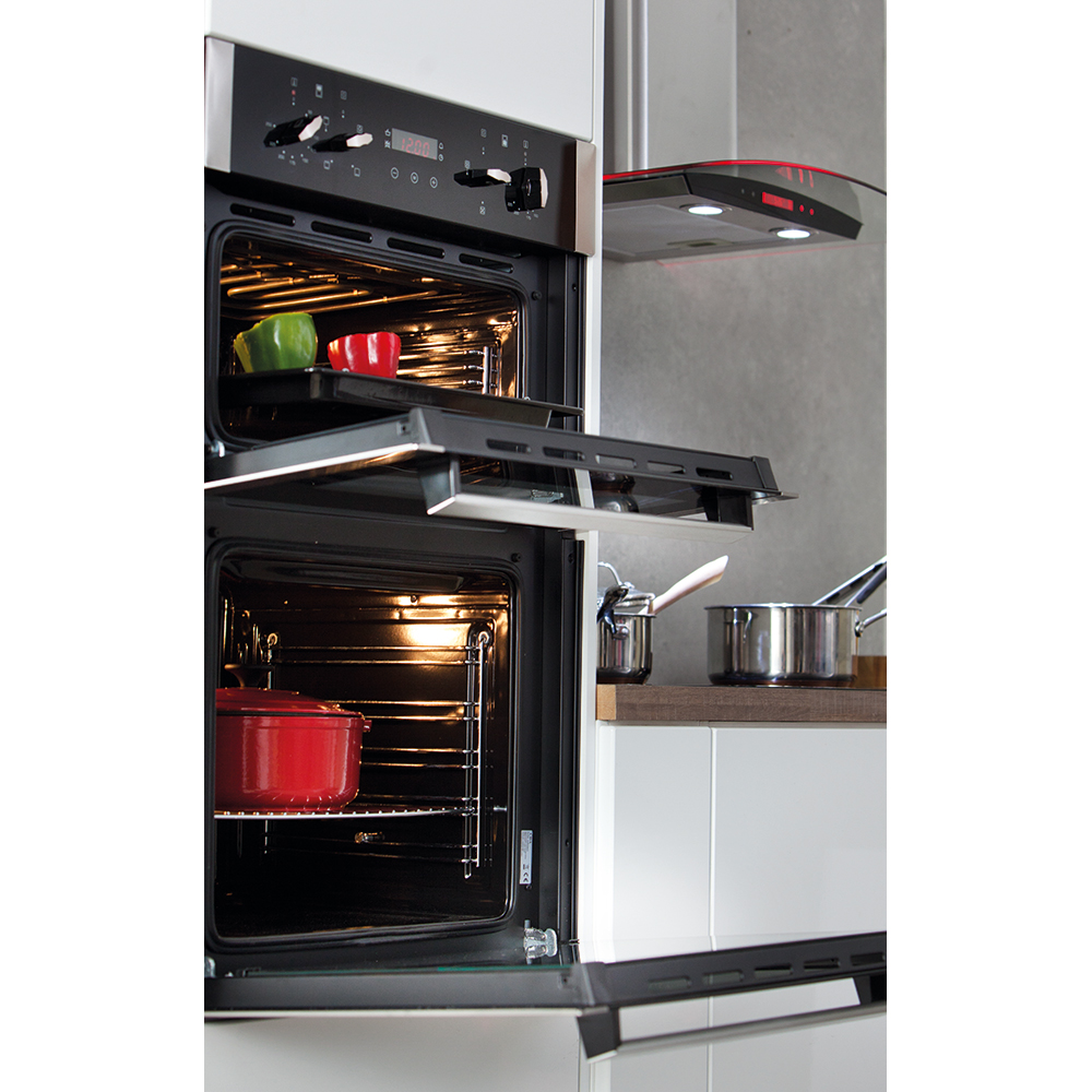 The DC940SS is a stylish, built-in electric double oven. It offers great design coupled with seamless functionality with a touch control timer, conventional and fan ovens, halogen interior lights and a double glazed door.