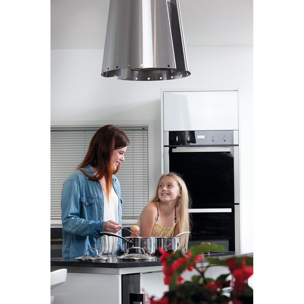 The CDA DK1151SS built-in electric double tower oven has a contemporary design and provides functional and efficient cooking for the user. The DK1151SS has the capacity of two full size ovens providing plenty of cooking space as well as lateral halogen lights and a touch control programmable electronic clock/timer.
