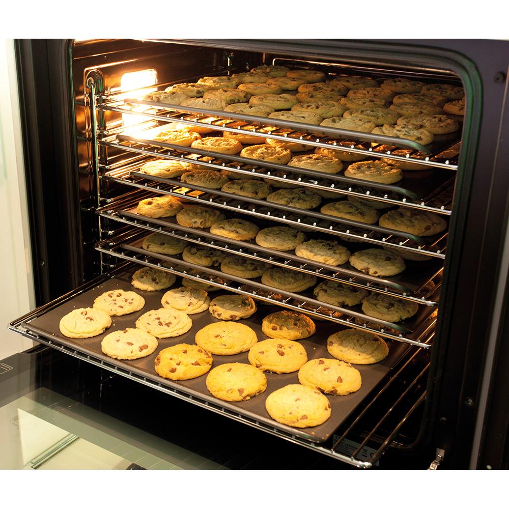 The SK410SS is a ten function single electric fan oven with a large capacity. It has an excellent A+ energy efficiency and comes with an easy to clean enamel interior, plus chrome racked sides with anti-tilt shelving.