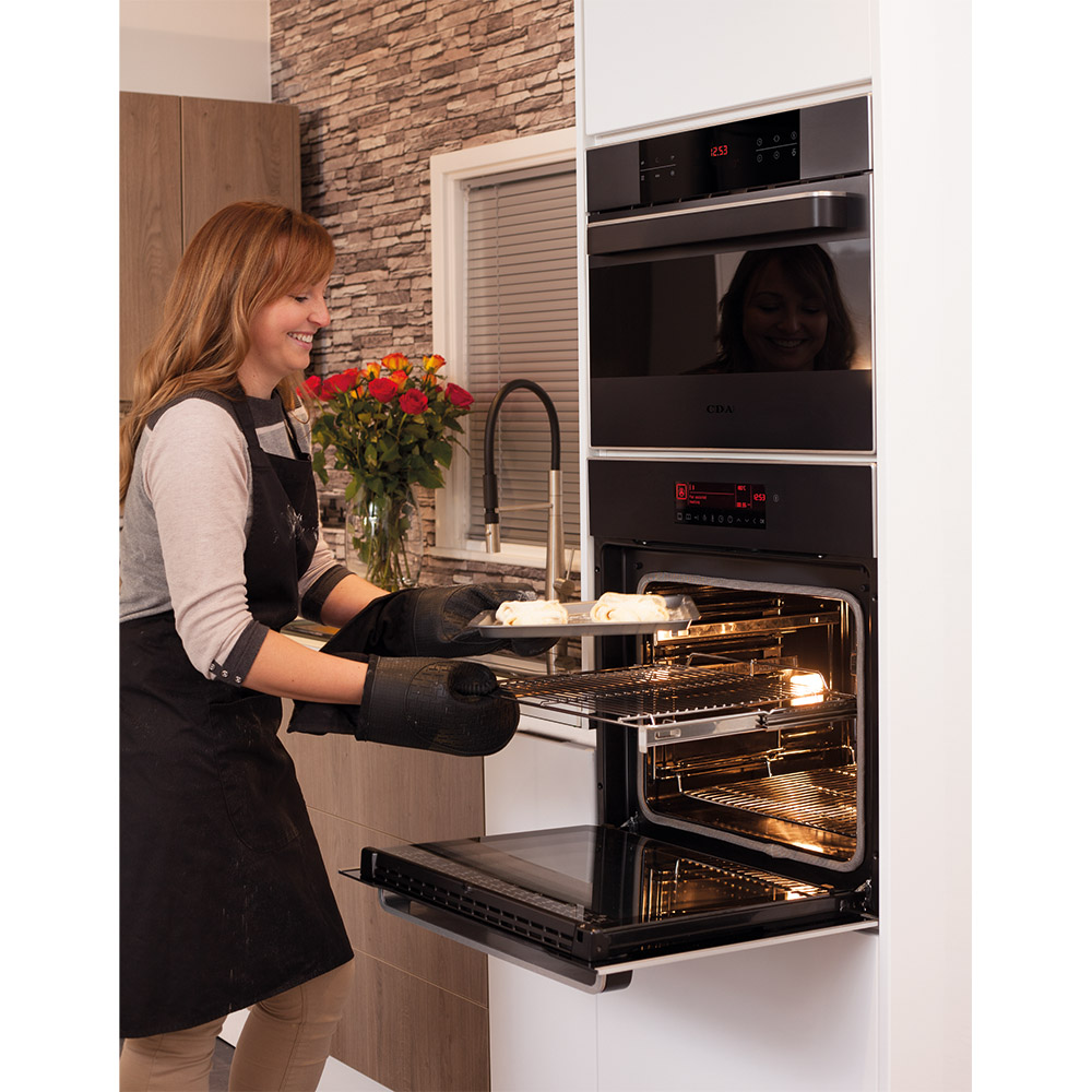 The SK900BL pyrolytic oven is everything you would expect from an all-in-one-self cleaning, automatic cooking appliance. The oven is packed with extra features including 2 fully extendable telescopic shelves, residual heat indicators, 37 automatic programmes, 20 custom programmes, a honeycombed deep roasting pan and more. The model features all the designer aesthetics and accessories of our Designer Kitchen Range.