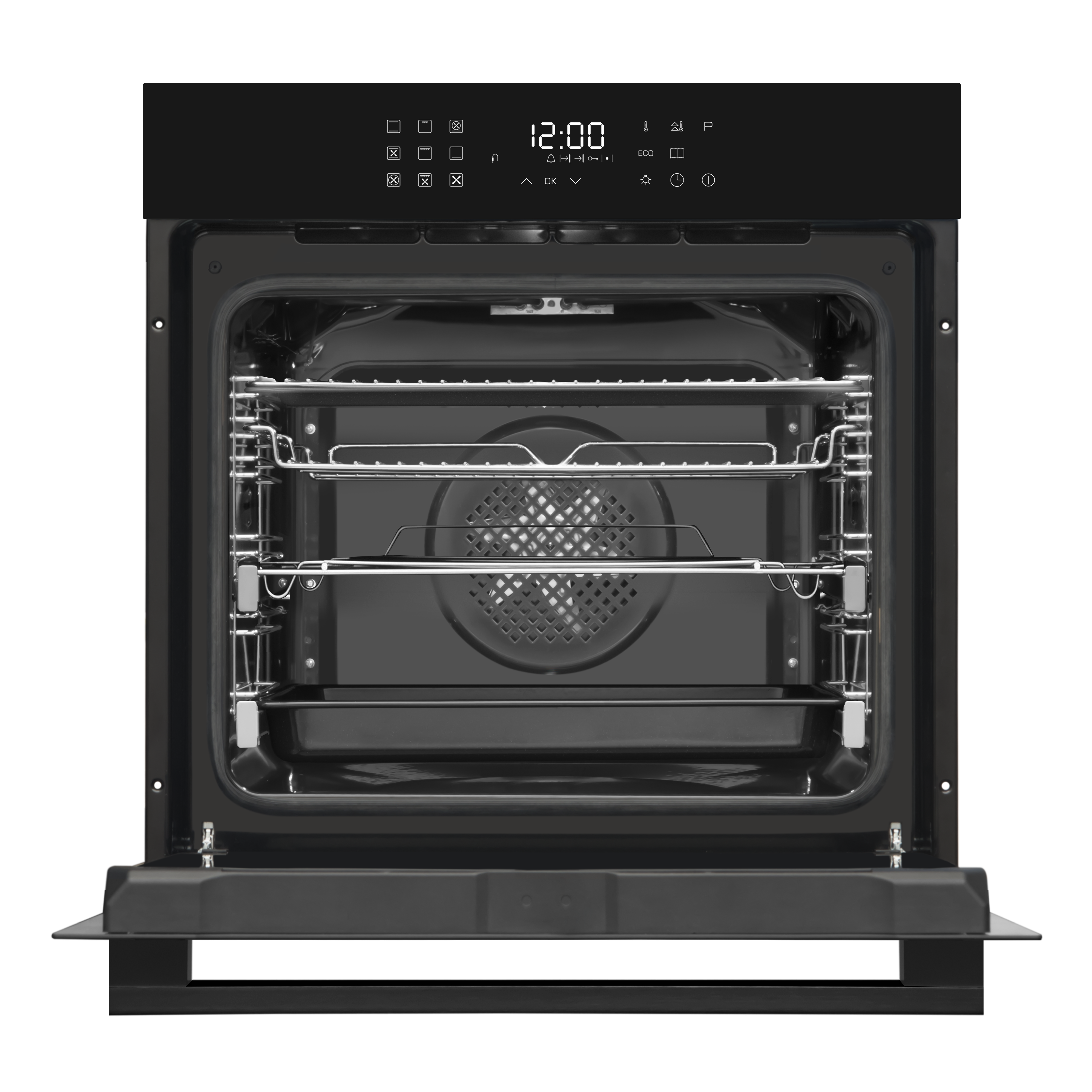 - Chromed rack sides with integrated anti-tilt shelves