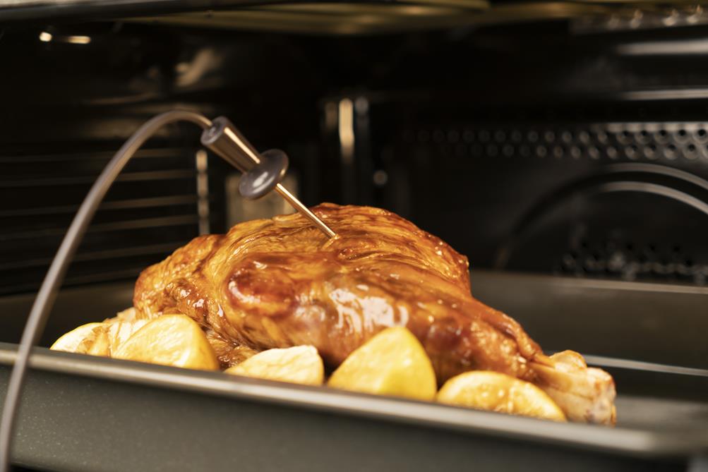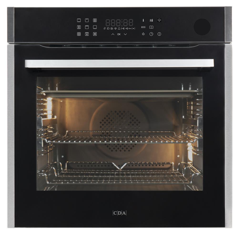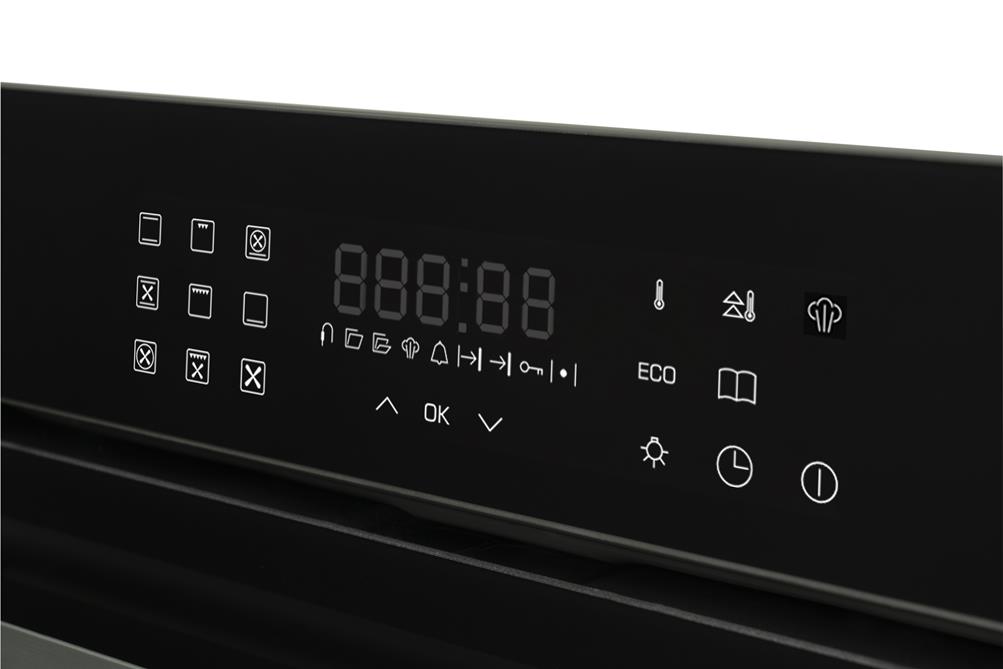 The SL670 is our top of the range complete cooking and self-cleaning oven model with 13 functions to choose from, including a rapid preheat mode, an extra-large 77L capacity and an intuitive 3-step quick touch control panel to select programme settings almost instantly. Choose from cooking with full steam, a combination of steam and traditional heat or simply use the familiar conventional and fan elements to produce perfect results every time. There is a steam cleaning function that will hygienically clean dirt and grease, eliminating harsh chemicals and elbow-grease from your routine. Enjoy the time-saving features and explore user-friendly details on this model, like telescopic slide-out shelving, a temperature probe to help achieve perfect roasts, automatic cooking programmes and a satisfying soft-close door action.