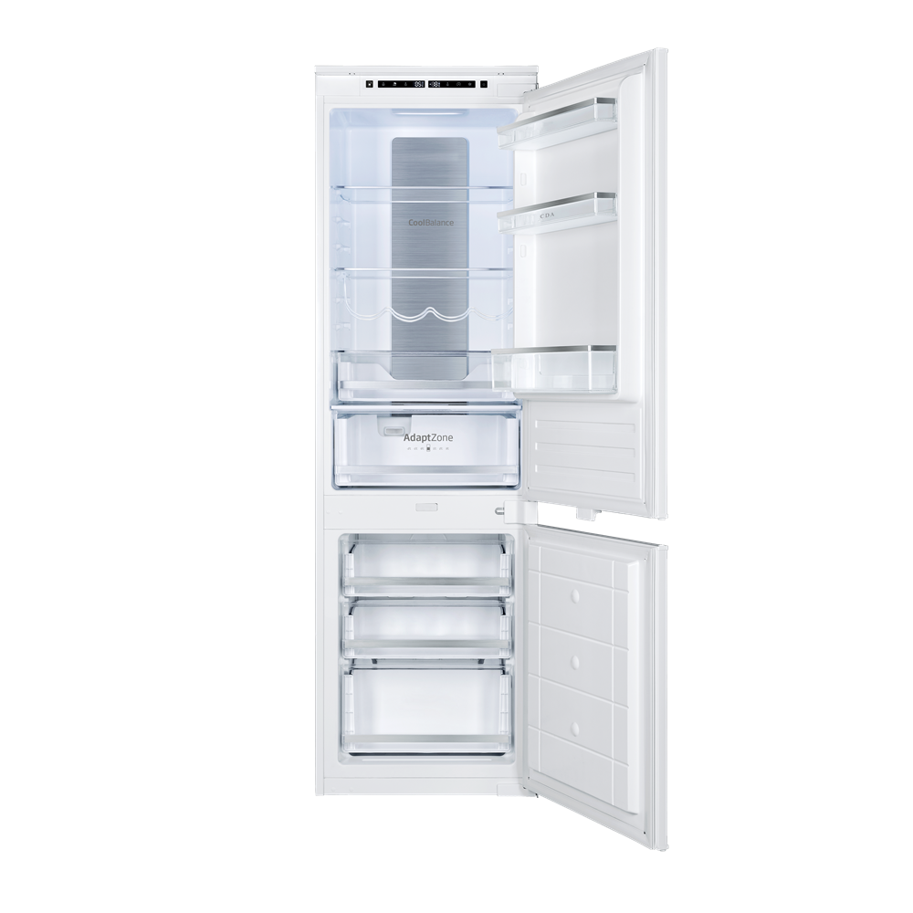 The FW972 is a built in frost free fridge freezer, with LED interior lighting and reversible doors. The fridge has 3 adjustable safety glass shelves, 3 in door balconies and a handy foldable wine rack. The freezer completes the storage with 3 drawers and an ice cube tray. There are also handy features such as Eco mode and Holiday mode, height adjustable front feet and a 4 star freezer rating