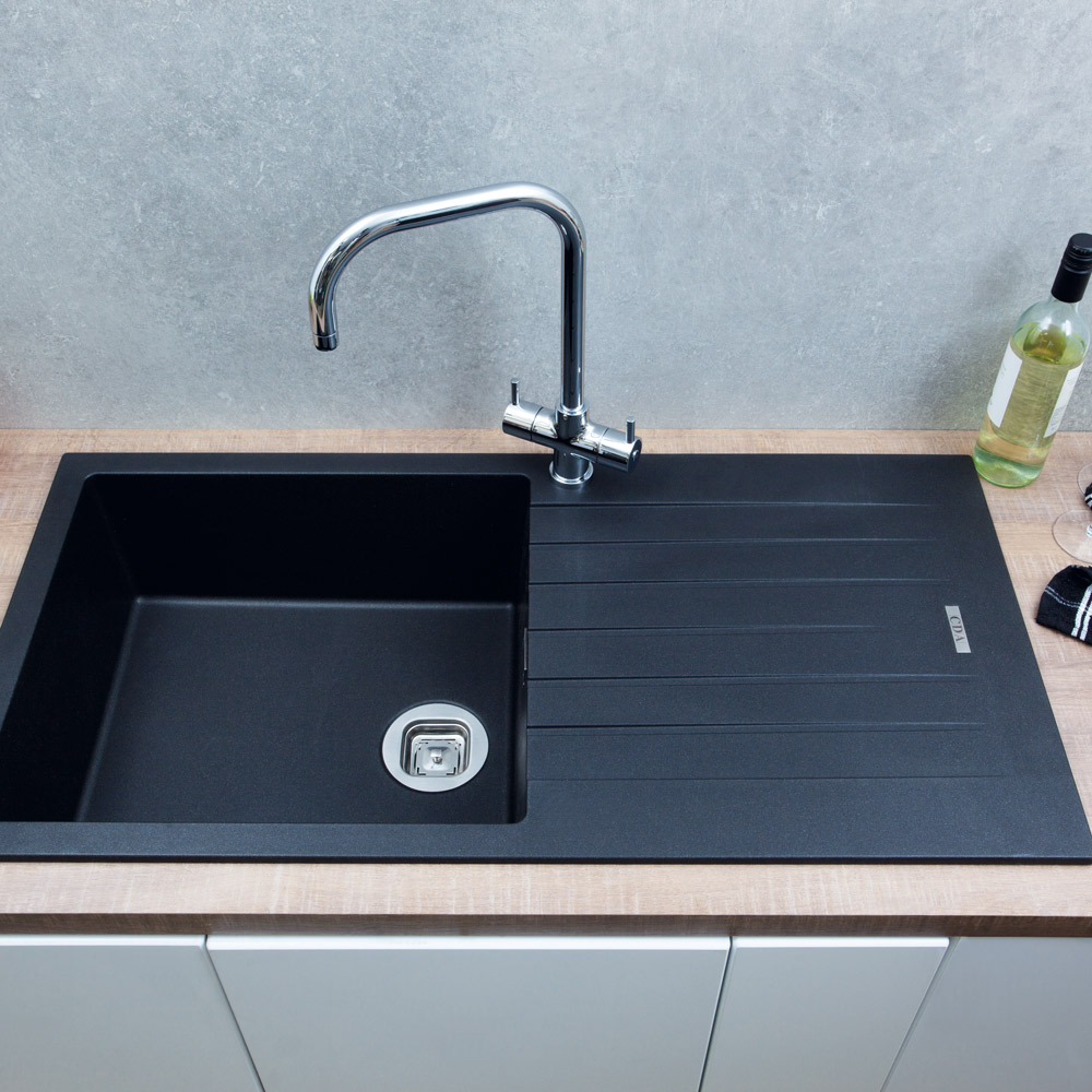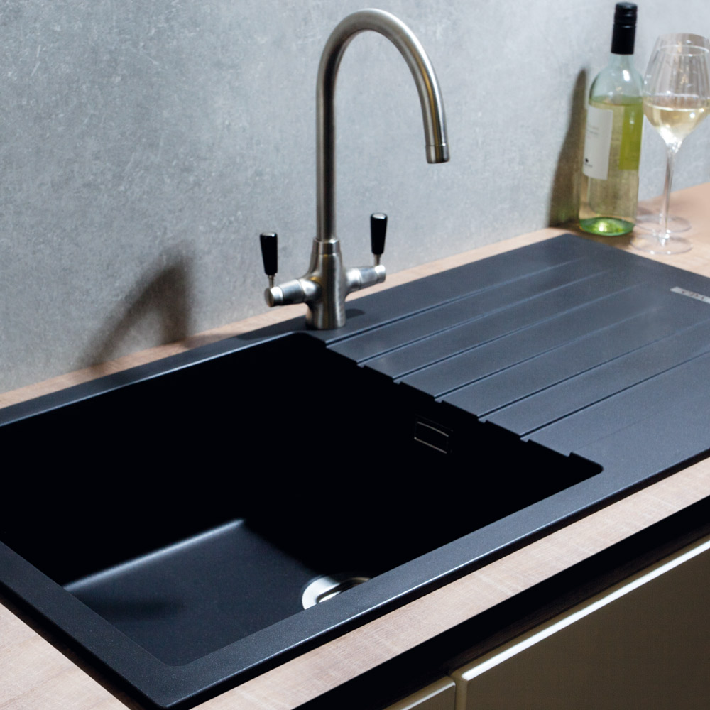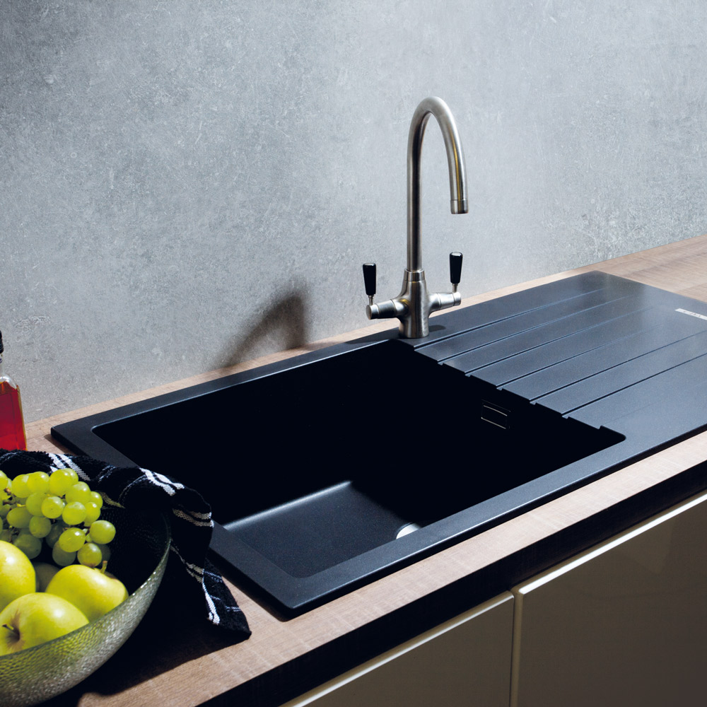 The KG73BL is a single bowl composite sink in anthracite. It is incredibly robust yet has the finest smooth metallic surface finish along with a smooth-fit edge that allows you to clean surfaces more effectively, resulting in a practical and highly attractive sink.
