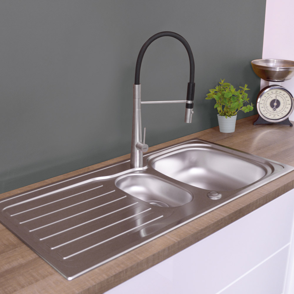 The CDA KA22SS is a one and a half bowl sink in stainless steel. It is corrosion and rust resistant to withstand tough use in the kitchen and its finish and design are both elegant and sleek, complementing your modern kitchen perfectly.