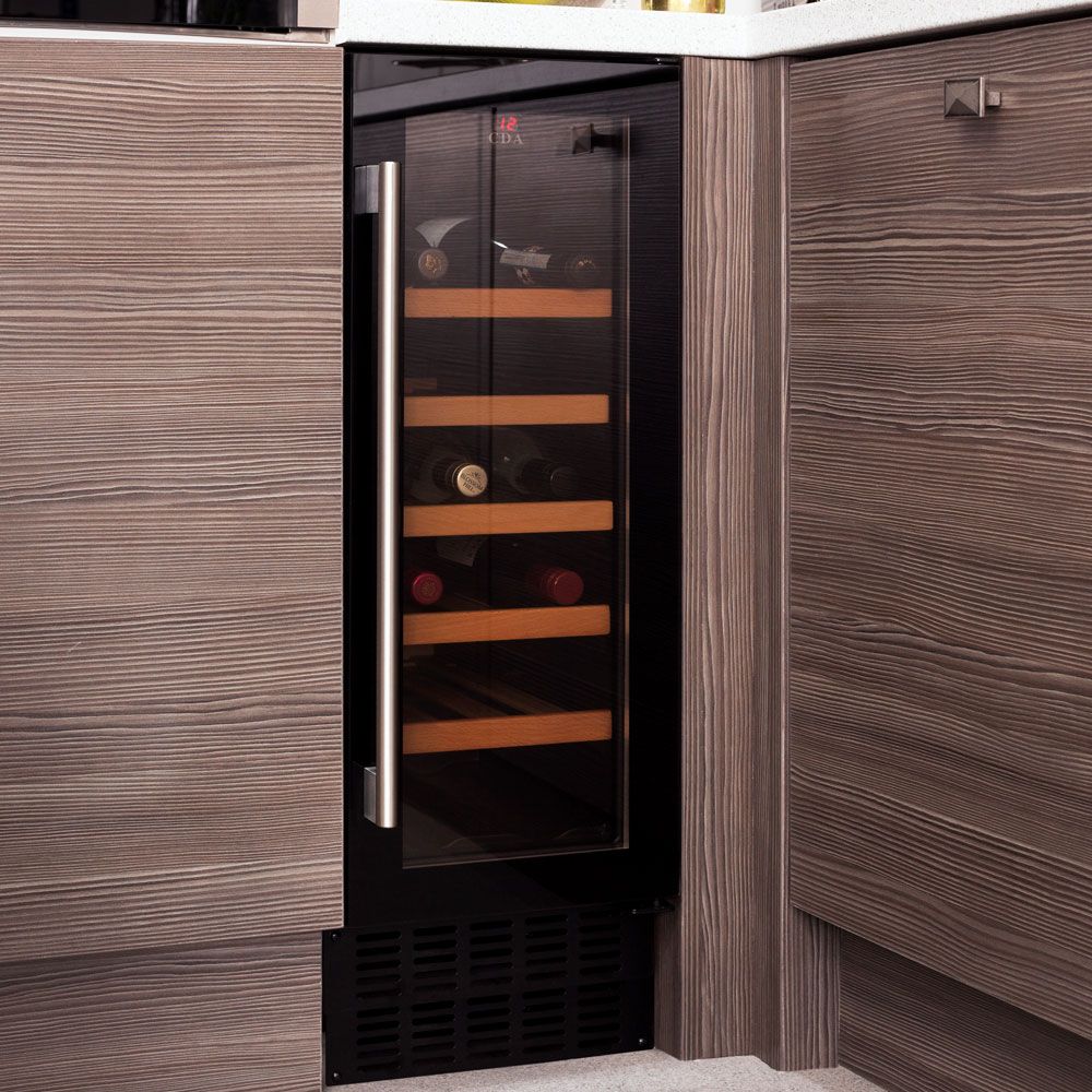 The FWC303BL is a freestanding, under counter, 30cm wine cooler with great capability within a stylish exterior. Features include: wooden slide out shelves with the capacity to hold 20 bottles, electronic temperature control, a UV protected smoked toughened glass door, a humidifier and a temperature alarm to maintain optimum conditions for the safe storage of your wine; this is the perfect addition to any functional kitchen design.